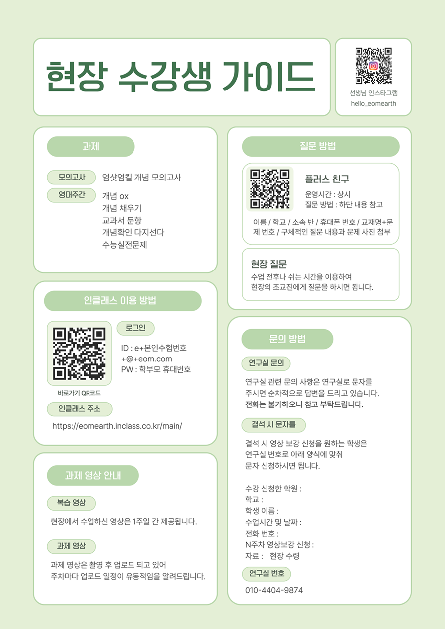 2027 수능대비 현장 수강생 가이드