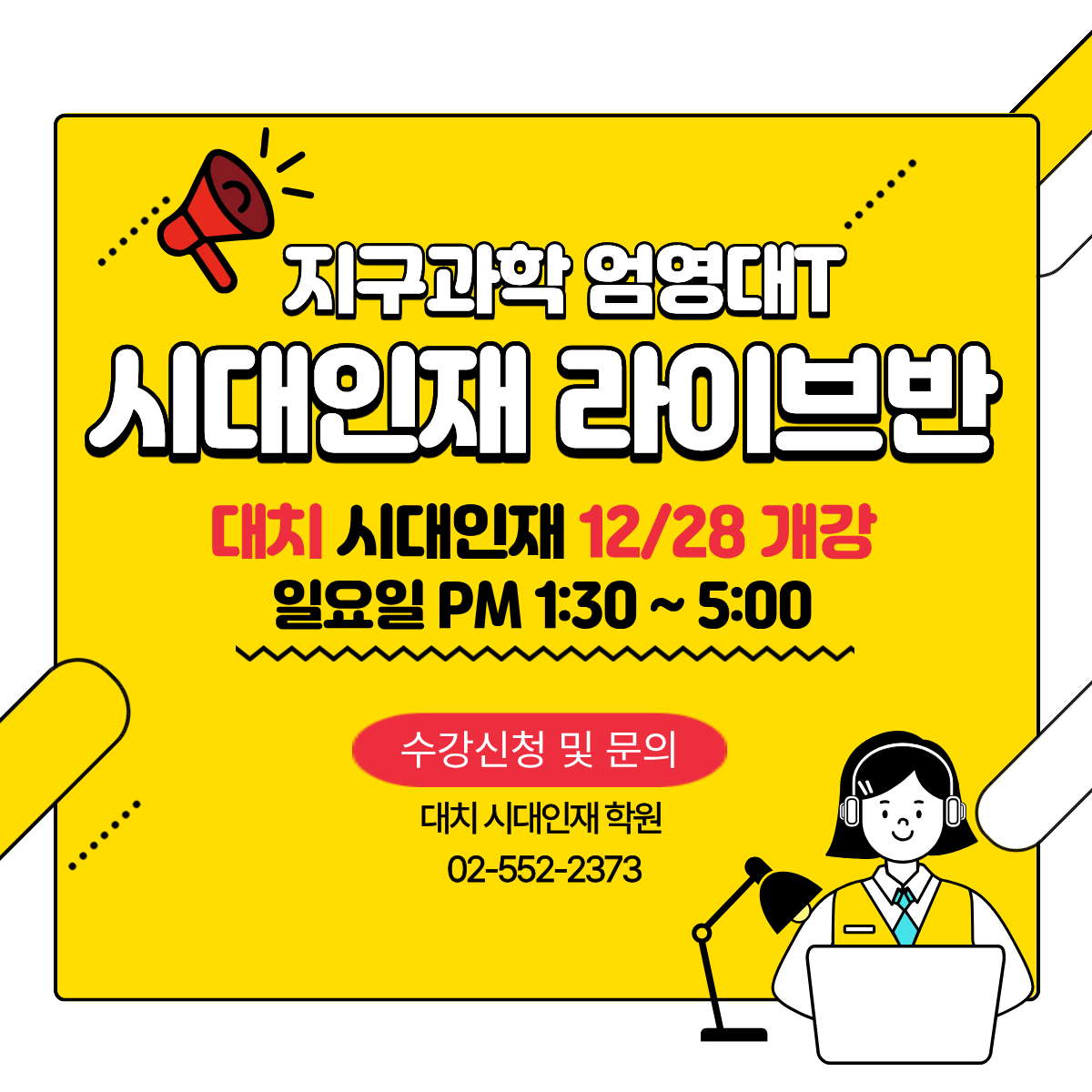 2027 수능대비 지구과학 엄영대 선생님 겨울방학 현장 강의 시간표 안내 드립니다.